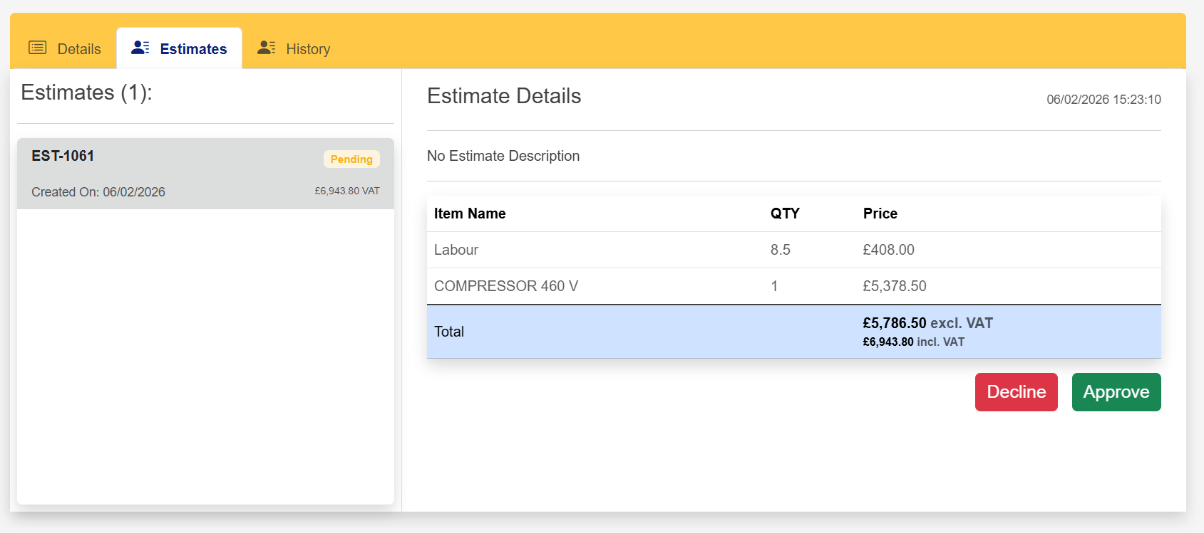 If one of our engineers requires parts to complete a job intrgroup will send you an estimate.