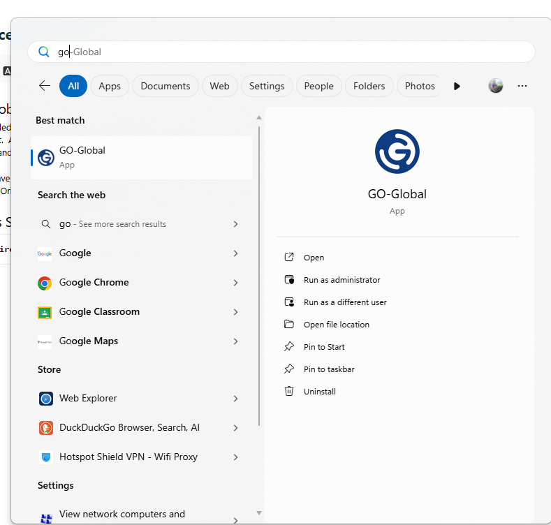 - The first time you connect to Go-Global will ask for your Windows Password.